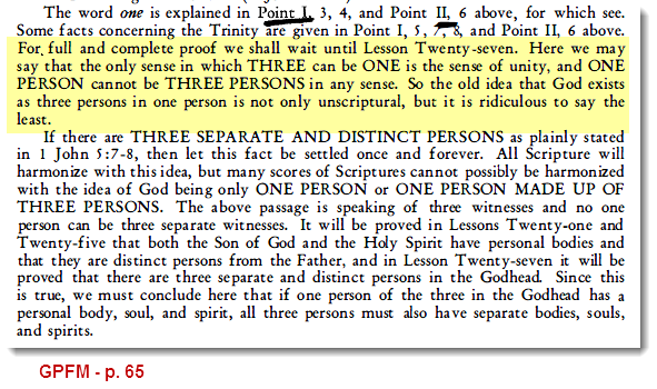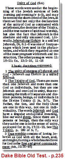 This ‘Oneness’ is not just three separate god’s working together in unity (which would be tritheism and which is what Dake teaches), but means that the essence, substance, what it is that makes God, God, in singular in nature. As the Athanasian Creed says, the essence or nature of God cannot be divided into portions .