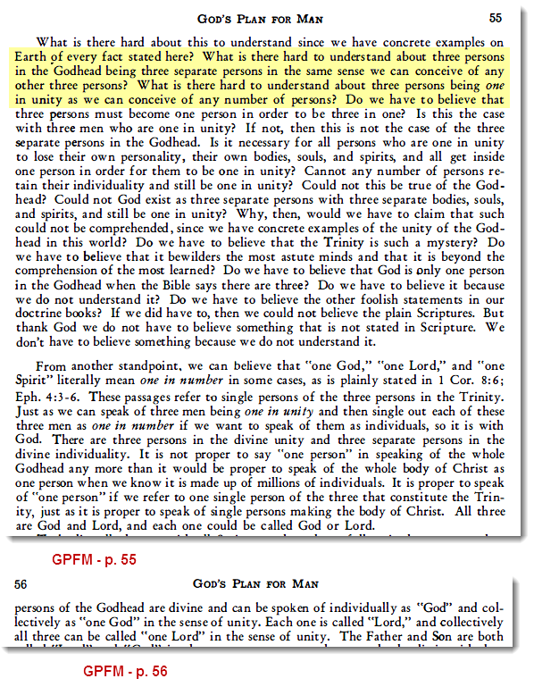 Why is it important that we have a biblical understanding of the Trinity? The teaching of the Trinity deals with the very nature of God. Denying the Trinity is a denial of the basic nature of who God is. Those (like Finis Dake) who worship three separate and distinct God’s are not worshiping and serving the same God as shown to us in the Bible. Finis Dake as a result taught a false god(s) and a corrupt and unbiblical view of the essential nature of God. While the Dake Bible and Dake’s “God’s Plan for Man” also deny that God is Omniscient, Omnipotent, Omnipresent, Immutable and other essential aspects of God’s essential nature, this paper will focus on his denial of the biblical understanding of the Trinity.